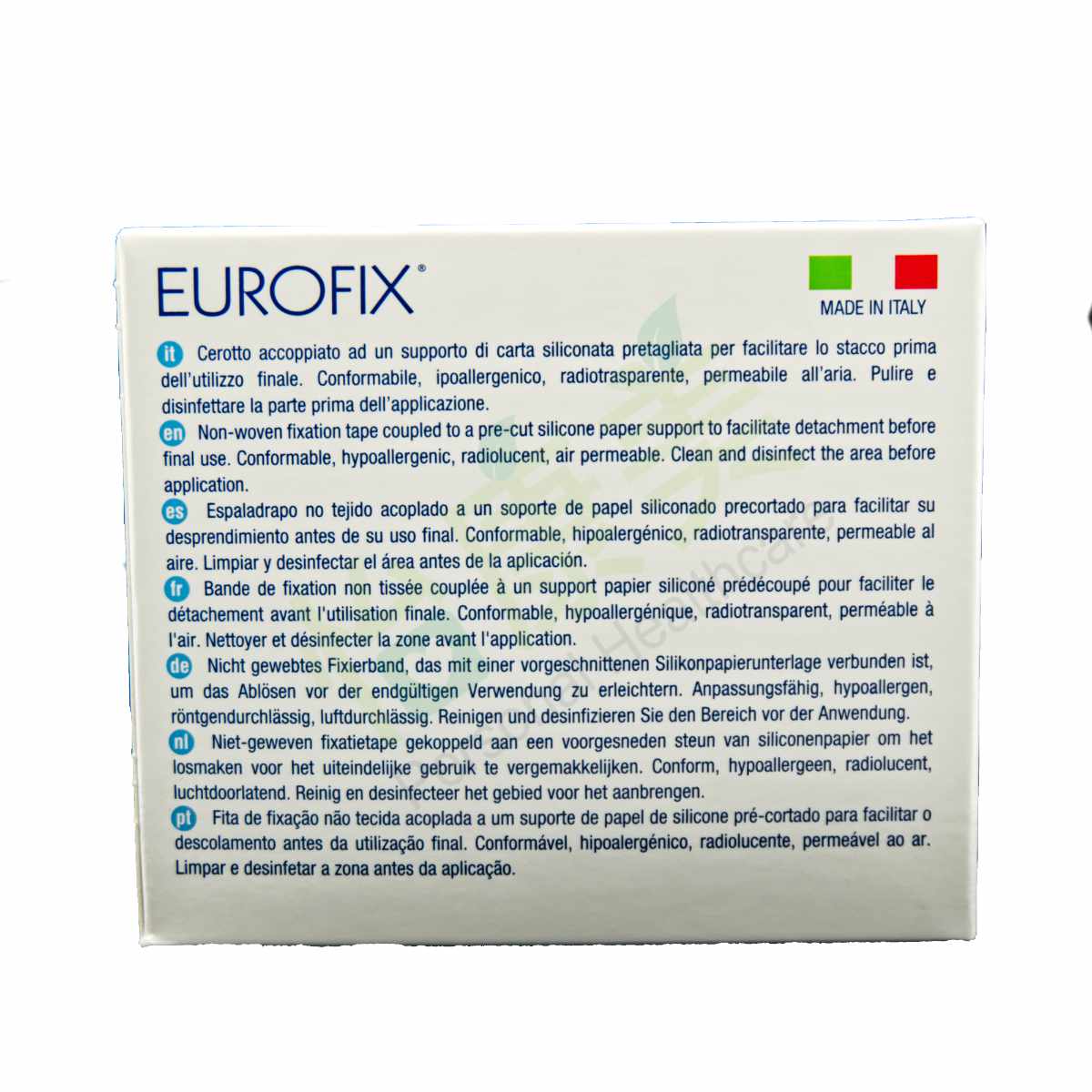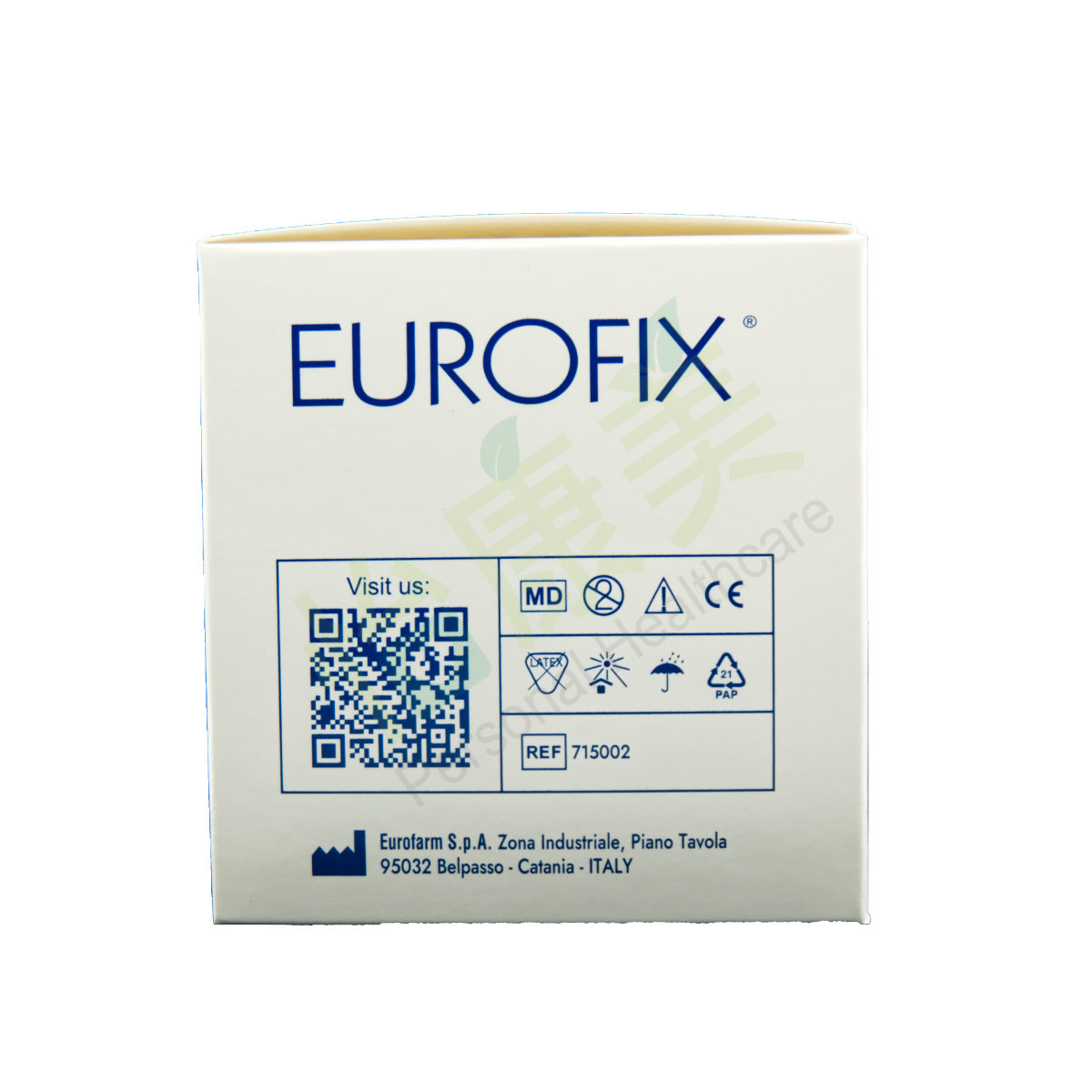 The special adhesive of EUROFIX® is not weakened by water and secretions and therefore the plaster retains its original fixing characteristics intact. Its extensibility in the transverse direction allows maximum adaptability of the plaster on joints and irregular anatomical parts of the body, without limiting movement.